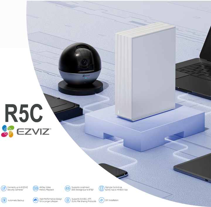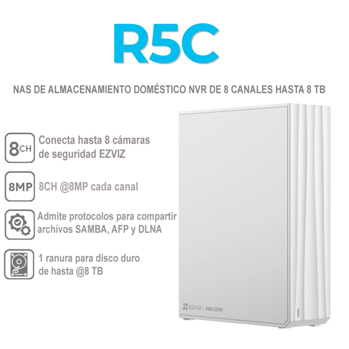 EZVIZ VIDEO BOX SKU: CS-R5C-R100-8F El R5C es la última solución de EZVIZ para almacenamiento familiar, especialmente para aquellos con sistema de seguridad sofisticados en el hogar. Como dispositivos NAS confiable, mantienen sus archivos y recuerdos bien protegidos y fácilmente manejables de manera...
