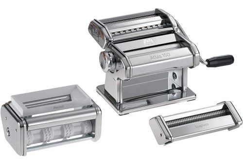 Marcato PastaSet es el kit ideal para preparar cinco formatos diferentes de pasta fresca en casa con una sola máquina. Gracias a sus accesorios intercambiables, la máquina para pasta Atlas 150 puede persona...