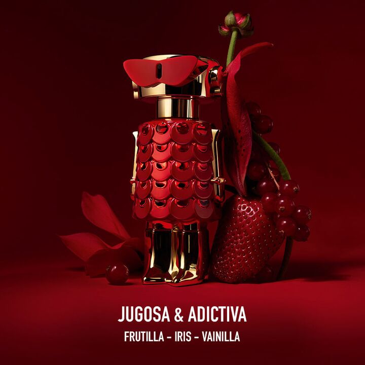 Descubrí la firma femenina más deliciosa de FAME con un inconfundible giro Rabanne: FAME IN LOVE Parfum Elixir. Un nuevo lenguaje del amor para la chica Rabanne, divertida y juguetona, potenciado por una nota de frutilla súper jugosa. Porque el amor es rojo. Fragancia floral amaderada frutal que abr...
