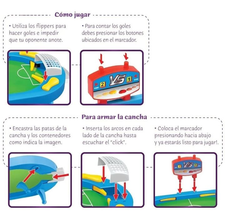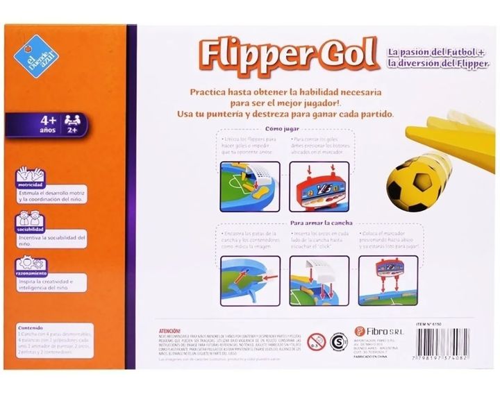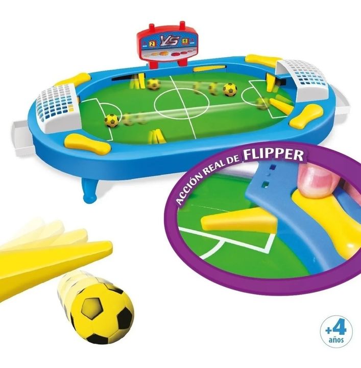Flipper-Gol! ¡Tendrás la pasión del fútbol y la diversión del flipper en un solo juego! ¡Pasarás horas de diversión con tus amigos gracias a este genial juego! ¡No esperes más y convertite en el ganador del Flipper - Gol´!Contenido: 1 Cancha con 4 patas desmontable. 4 Palancas con 2 golpeadores c/u....