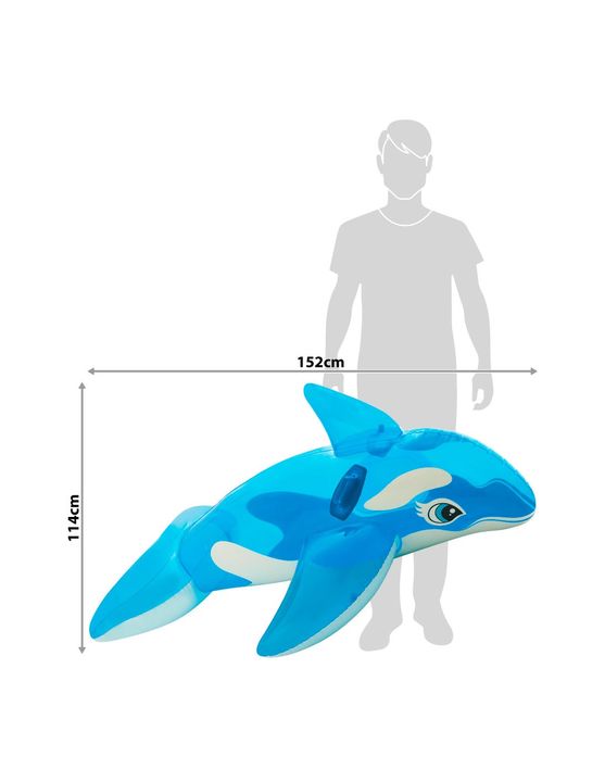 Colchoneta hinchable Intex con forma de orca. Fabricada de vinilo resistente. Dispone de 2 asas para una mayor sujeción y estabilidad en el agua. Ideal para su uso en piscinas. Incluye kit de parches. Medidas: 163x76 cm