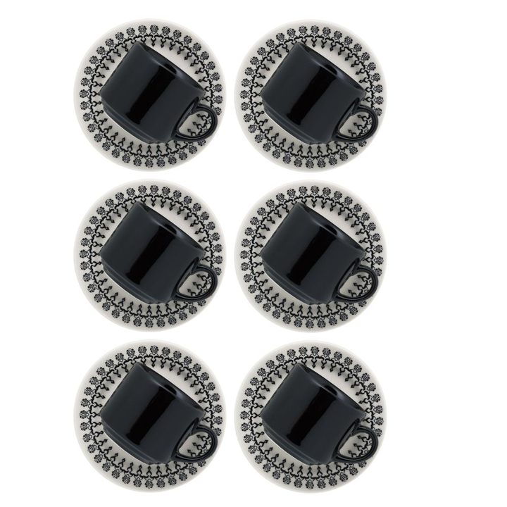 El color negro es basico y neutro, un autentico comodin a la hora de poner la mesa. En esta vajilla ponemos el color negro en un estampado mas alegre y jovial, perfecto para los que prefieren un formato de plato tradicional con una decoracion mas alegre.