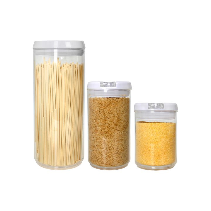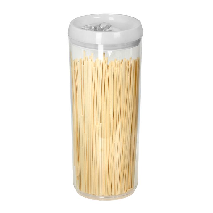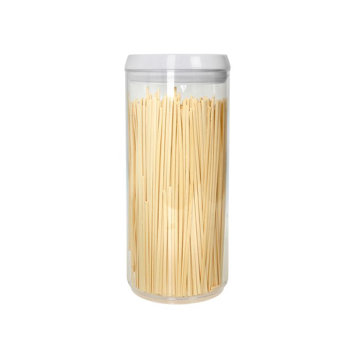 Frasco de Acrilico Hermetico con cierre Easy Lock. El cierre posee una goma interior que asegura la hermeticidad. Modelo redondo. Medidas exactas de la base son : Altura : 28 cms / 11 cms x 11 cms. Con la tapa queda en : 30 cms de altura / 13 x 13 cms Capacidad : 2,6 lts. Tapa blanca con cierre en a...