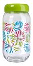 Frasco de vidrio con tapa de plástico hermético con cierre rosca 660 cc Vidrio decorado Medidas : Altura total: 14.5 cm Diámetro de la base: 8 cm Diámetro de la boca: 7.5 cm Capacidad: 660 cc Ideal para el guardado de : azúcar, nueces, almendras, arroz, ... etc etc Origen : China Marca: Aston