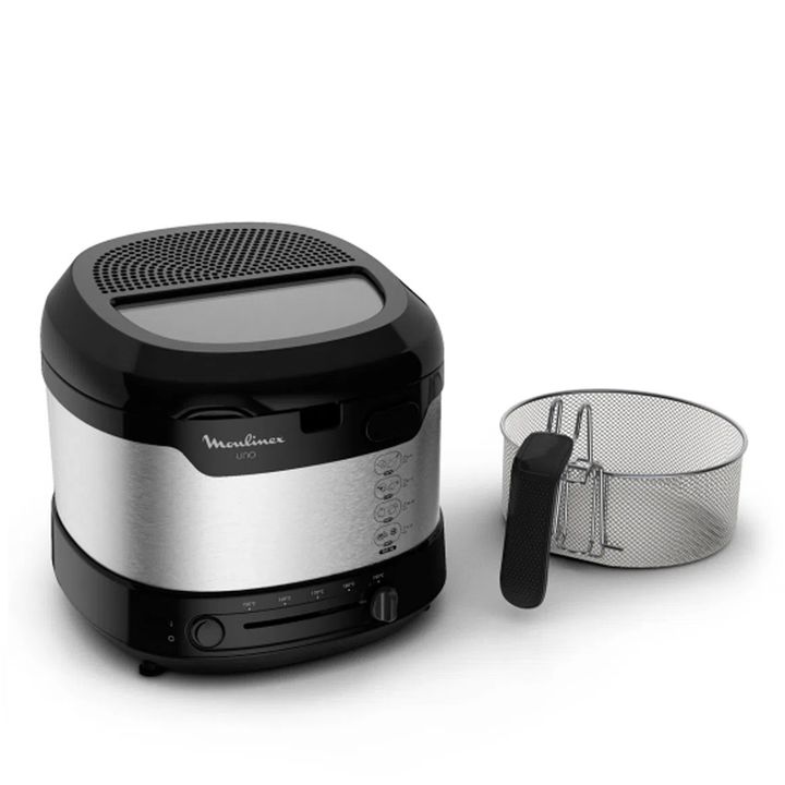 Freidora Uno M Inox Moulinex AF215D58: Nuestra freidora automática, hace papas deliciosas muy fácil. Cuenta con Bowl Antiadherente y una capacidad de Comida de 1 kg y 1,8 litros de aceite • Pueden freirse todo tipo de alimentos y tiene filtro anti humo y olores • Una ventana en la tapa te da la posi...