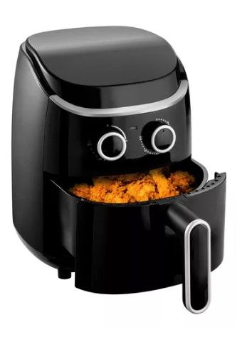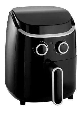 Freidora de Aire sin aceite, funciona por sistema de aire extra caliente. Capacidad de 3,5 litros. Termostato ajustable. Manija fría al tacto. Fácil limpieza.