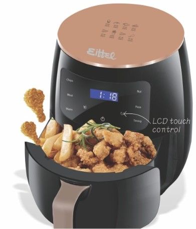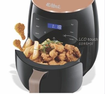 Freidora de Aire sin aceite. Digital. Capacidad de 5 litros. Termostato ajustable de 80 a 230 grados. Manija fría al tacto. Fácil limpieza. Muy linda y decorativa.