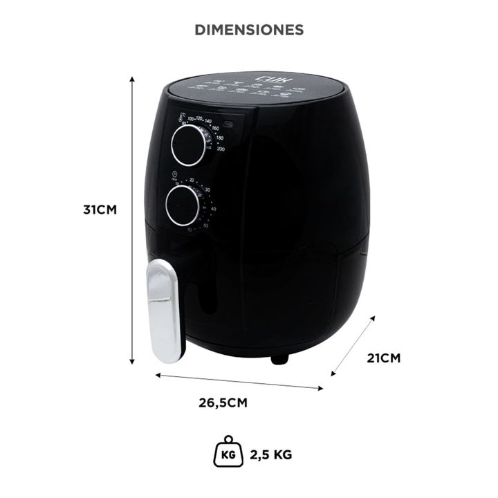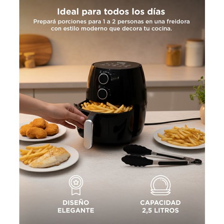 ¡Descubrí una forma más saludable de cocinar con nuestra freidora de aire! Con una capacidad de 2,5 litros y un diseño compacto, nuestra freidora de aire es perfecta para cocinar deliciosas comidas para toda la familia sin ocupar demasiado espacio en tu cocina. Su control intuitivo te permite ajusta...