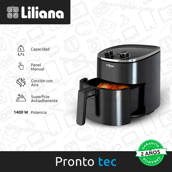CARACTERÍSTICAS: - Marca: Liliana - Modelo: AF930 - Capacidad: 3,7 Lt - Potencia: 1400 W - Timer: Si, hasta 30 minutos - Temperatura: Hasta 200° - Display LCD: No - Apto lavavajillas: Si - Garantía oficial CONTENIDO DE LA CAJA: - Manual de Usuario ////////////////////////////////////////////////////...