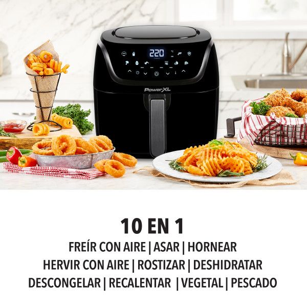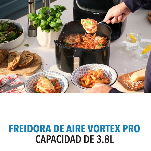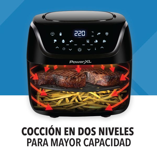 POWER XL AIR FRYER 3.8L MODELO: AF-E4001-AR Freidora de aire PowerXL™ Vortex Pro AF-E4001-AR, con capacidad de 3.8 litros y cocción en 2 niveles, para crear comidas completas y resultados deliciosos. Fríe y hornea con aire de manera saludable con poco o nada de aceite. La freidora de aire PowerXL™ t...
