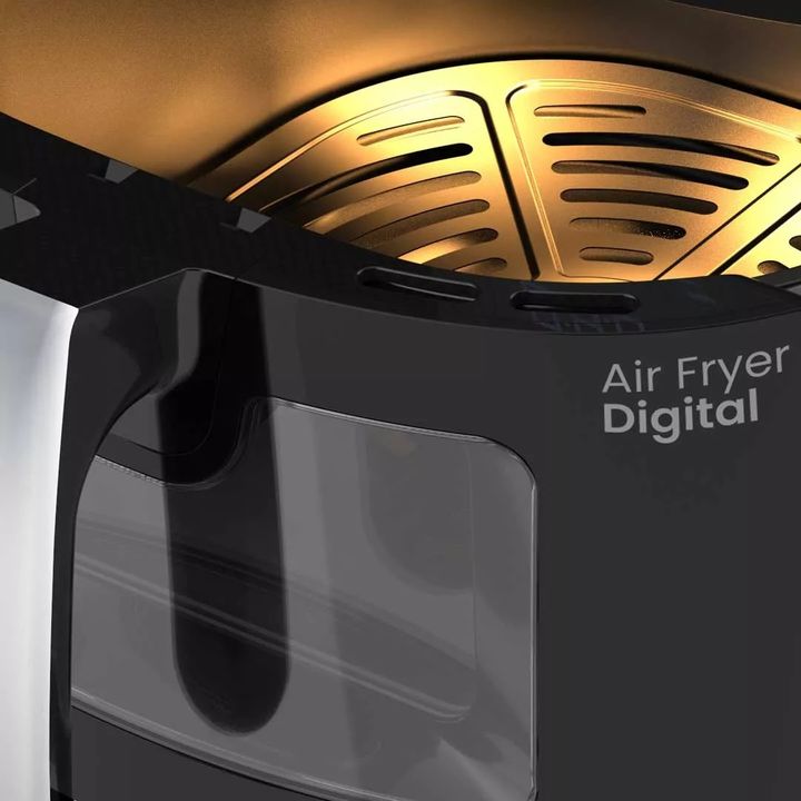 Potencia 1300 Watts. Capacidad 6 litros Para freir. hornear o cocinar. Facil limpieza. Panel de control TaCTIL. Ventana Frontal transparente. Display digital con indicadores luminosos. Coccion por circulacion de aire caliente. Recipiente antiadherente extraible con grill separador. Temporizador de 3...
