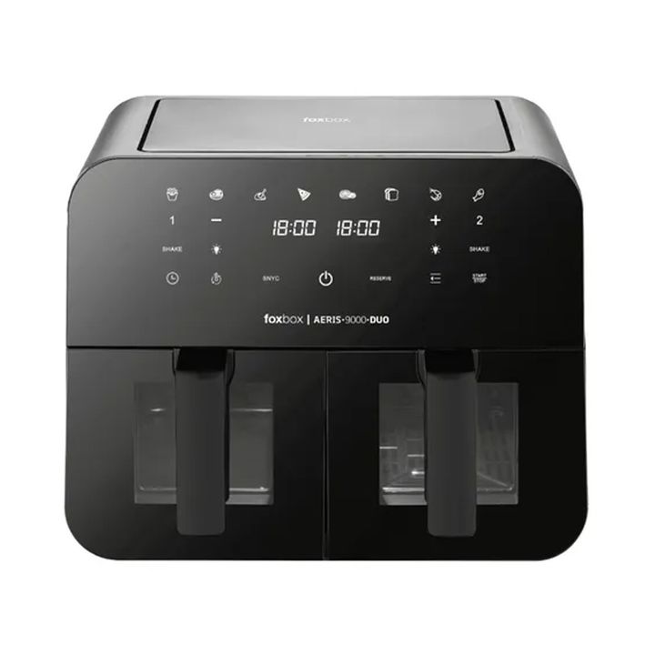 FOXBOX AERIS 9000 DUO Capacidad 9 lts Con bandeja metalica, visera y pantalla tactil digital Rango de temperatura: 80-200 C Ajuste de tiempo: Temporizador de 60 minutos. Potencia: 2400W Capacidad en volumen 9 L Con control de temperatura Sí Temperatura mínima 80 C Temperatura máxima 200 C Cantidad d...