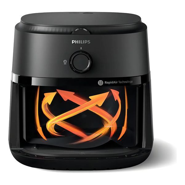 Características principales Marca: Philips Línea: 3000 Modelo: RapidAir Color: Negro Voltaje: 220 V Potencia: 1,7 kW Eficiencia energética (Argentina): A Capacidad Capacidad en volumen: 6,2 L Cantidad de canastos: 1 Dimensiones y peso Altura: 30 cm Ancho: 28 cm Largo: 35 cm Peso: 5,5 kg Funciones y ...