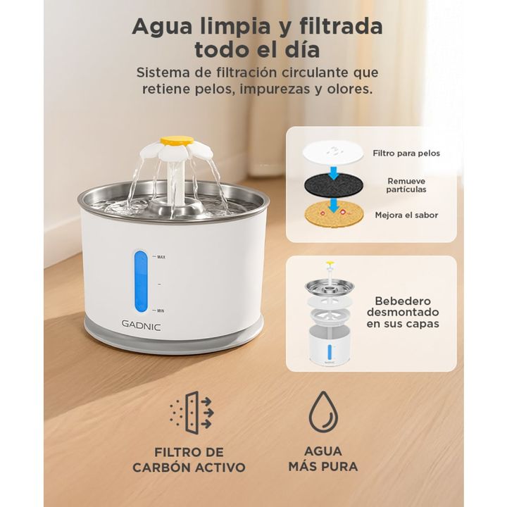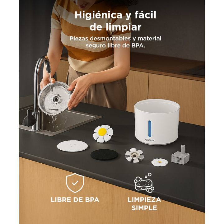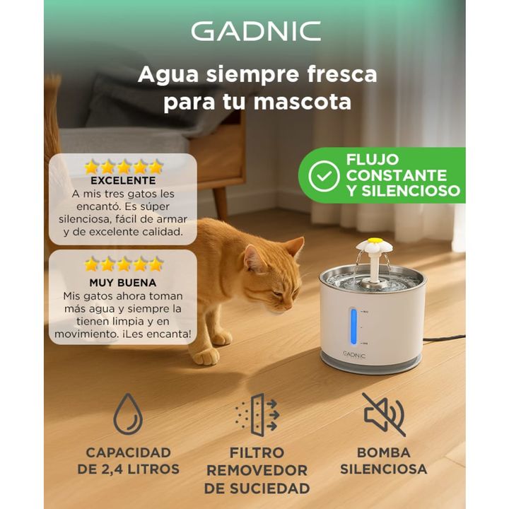 ¡Gadnic presenta su nueva linea de Fuente De Agua Recirculante! La tapa de acero inoxidable de alta calidad es duradera, higiénica y apta para lavavajillas. Bomba inteligente con luz indicadora. La bomba es silenciosa (por debajo de 40 dB). Es de bajo voltaje y suele durar de 3 a 4 años. El sistema ...