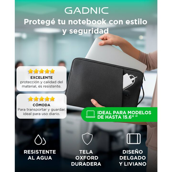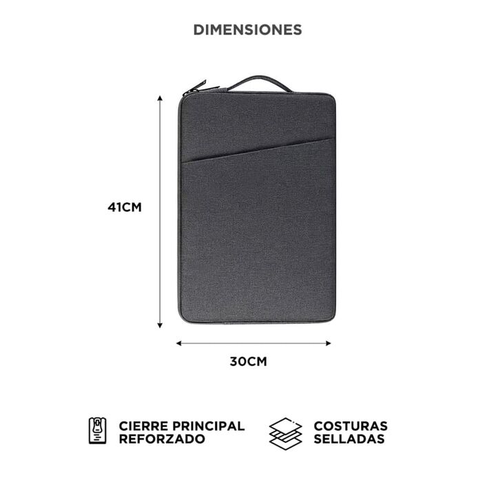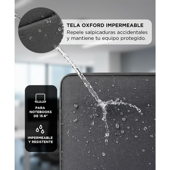 Protección resistente y liviana Fabricada con tela Oxford, esta funda combina resistencia al uso diario con un diseño cómodo para transportar. Impermeable y segura Su material repele salpicaduras accidentales y protege tu notebook del agua y la humedad. Apta para notebooks hasta 15.6” Medidas genero...