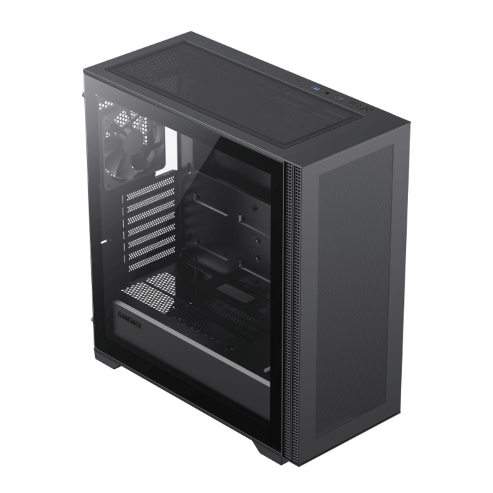 Caja para juegos GAMEMAX Quest E-ATX PC, 1 ventilador negro de 120 mm preinstalado, soporte de radiador superior y frontal de 360 mm, vidrio templado lateral y panel frontal de metal sucio, puerto USB3.2 Gen2 2x2 tipo C ¡Listo!