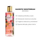 Gel De Baño Cuerpo Teu & Bany Majestic Nightdream 236 Gr Clasificación Olfativa: Floral, amaderada. COCO - GARDENIA - CEDRO Es una fragancia que combina la dulzura suave del coco con la frescura floral de la gardenia, sobre un fondo amaderado y cálido que evoca la serenidad de un bosque nevado. Maje...