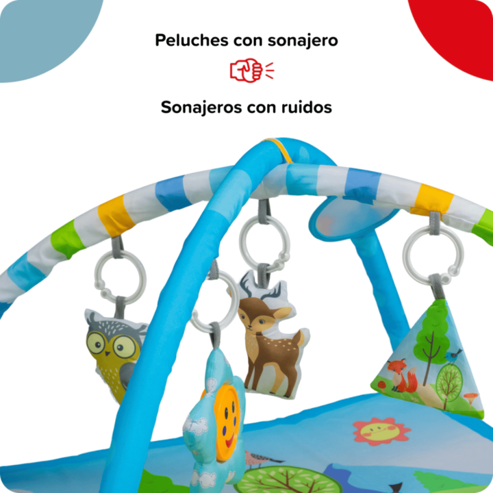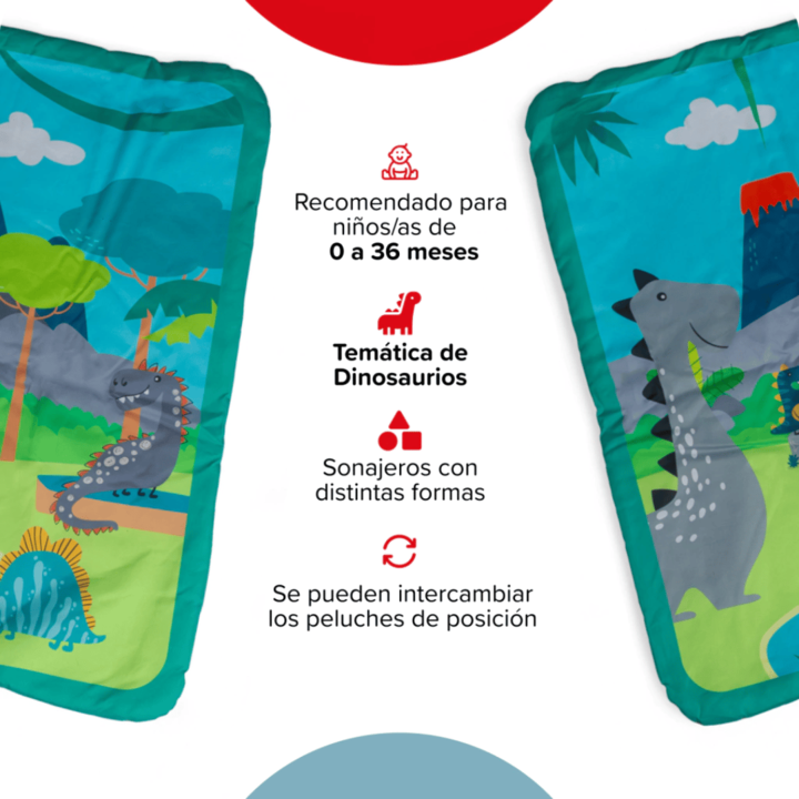 Gimnasio Actividades Cuadrado Turquesa - Dinosaurios 5010-CH El Gimnasio de Actividades Bebesit 5010 Dino Turquesa transforma cualquier piso en un mundo prehistórico lleno de juego y estimulación. Su suelo acolchado con ilustraciones de dinosaurios, sus arcos suaves y los colgantes interactivos invi...