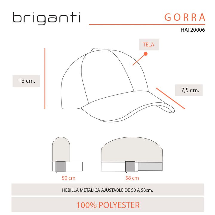 Gorras con visera confeccionadas con algodón de alta calidad, una sutil elasticidad y textura suave para aportar lujo y confort al uso diario. Con su hebilla de metal y tamaño único se garantiza un ajuste seguro y cómodo durante el uso. - Material: Polyester - Articulo: UAGO20006-061 - Marca: Brigan...