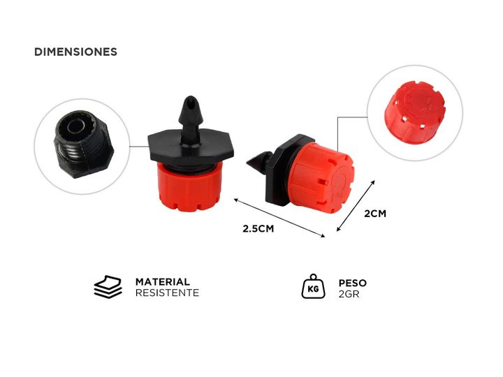¡Transforma tu jardín con los Goteros Regulables Gadnic! Diseñados para ofrecer la máxima eficiencia y precisión en el riego, estos goteros son la solución perfecta para cualquier entusiasta de la jardinería. Con un tamaño compacto de 2,48 x 2 cm y un peso ligero de solo 1,5 g por unidad, los gotero...