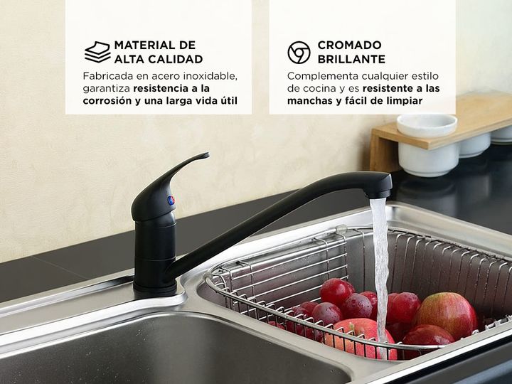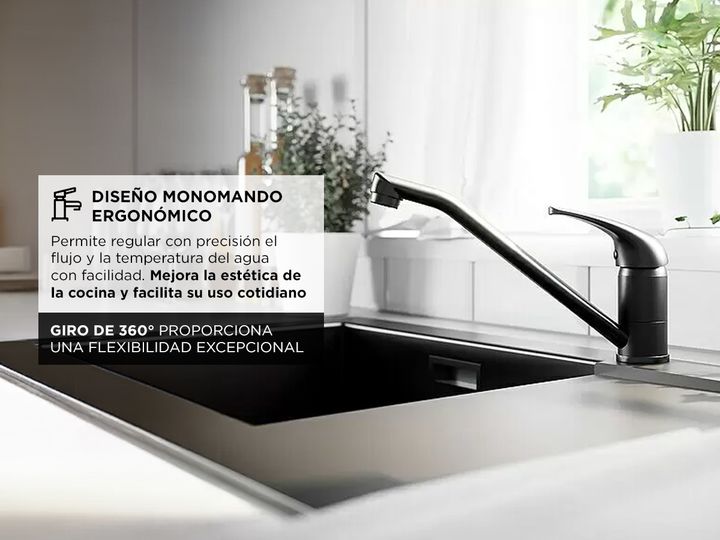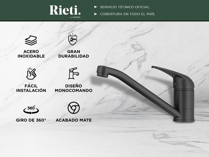 Rieti by Gadnic presenta la nueva Canilla de Cocina Monocomando Negro Mate: Material de Alta Calidad: Fabricada en acero inoxidable, garantiza resistencia a la corrosión y una larga vida útil. El material también es fácil de limpiar y mantener, manteniendo su brillo y aspecto original a lo largo del...