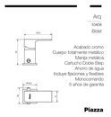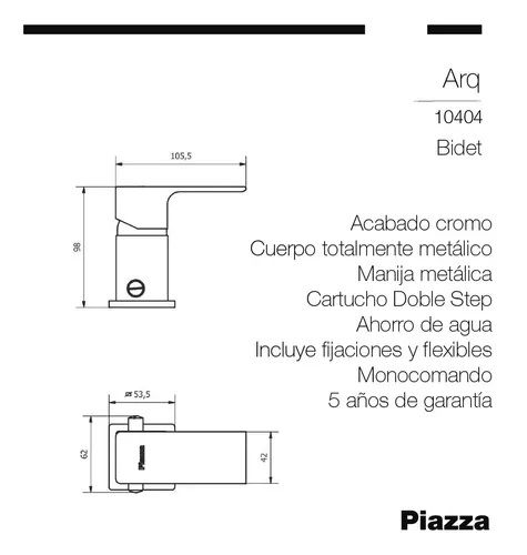GRIFERIA BIDET PIAZZA ARQ CROMADO CON TRANSFERENCIA 10404 - Modelo 10404 - Linea ARQ - Con función de cambio de salida de agua - Acabado en cromo - Estructura completamente metálica - Manija de metal - Cartucho 035 de doble etapa para economía de agua - Incluye kit de fijación - Incluye flexibles de...