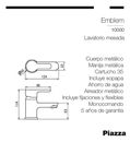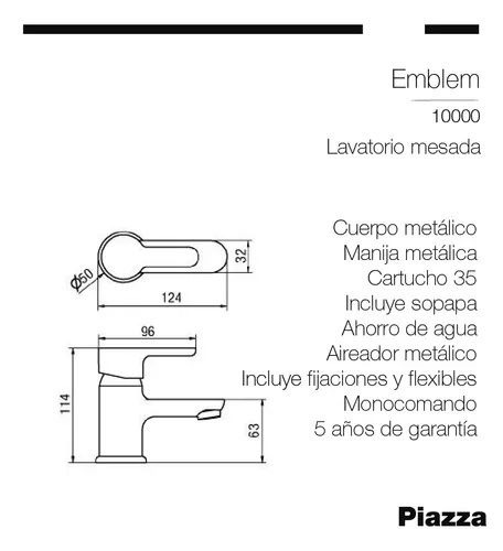 GRIFERIA LAVATORIO MESADA PIAZZA EMBLEM MONOCOMANDO 10000 Elegancia y rendimiento se unen en este grifo de cocina. Con un diseño exquisito y acabado en cromo, este modelo Emblem ofrece durabilidad y estilo. Su construcción metálica y cartucho de Ø 35 mm garantizan un funcionamiento confiable. La pre...