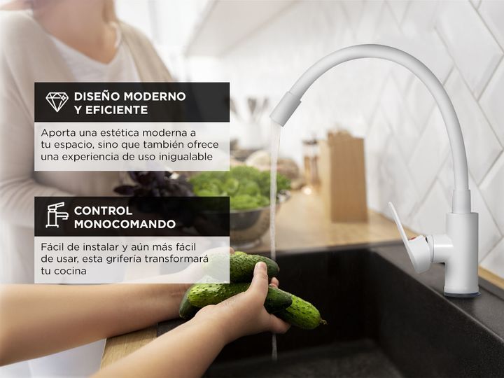 Redefiní la funcionalidad y el estilo de tu cocina con nuestra innovadora Grifería Monocomando Flexible. Disponible en tres sofisticados colores – negro, blanco y gris – esta grifería no solo aporta una estética moderna a tu espacio, sino que también ofrece una experiencia de uso inigualable. Fabric...