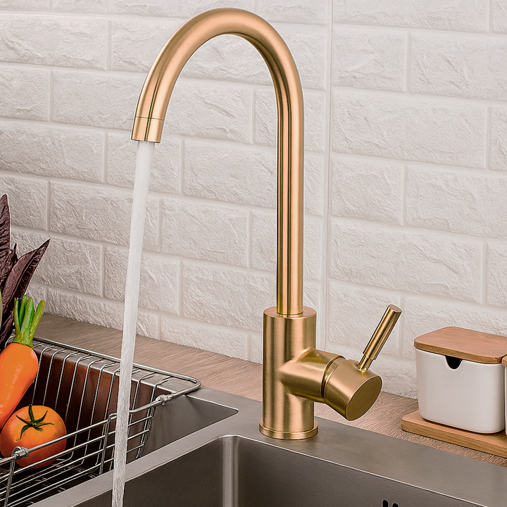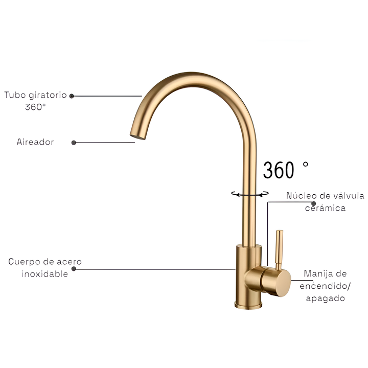 NOVOHOME GRIFERÍA MONOCOMANDO PARA COCINA GOLD CIERRE CERAMICO SKU: NH-GC90GL GRIFERÍA MONOCOMANDO PARA COCINA - ACABADO DORADO - Material del Grifo: Fabricado en acero inoxidable, lo que garantiza durabilidad, resistencia a la corrosión y facilidad de limpieza. Ideal para entornos exigentes como la...