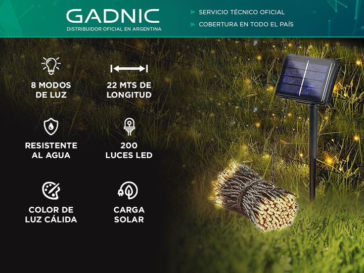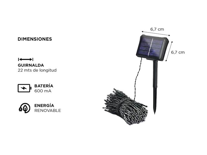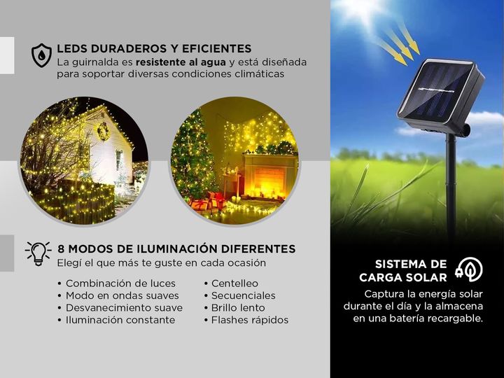 Introduciendo nuestra guirnalda de luces con carga solar, la solución perfecta para iluminar y decorar tus espacios de manera sostenible y sin cables. Con un diseño elegante y práctico, esta guirnalda de luces es ideal para embellecer tus jardines, patios, terrazas y cualquier otro lugar al aire lib...