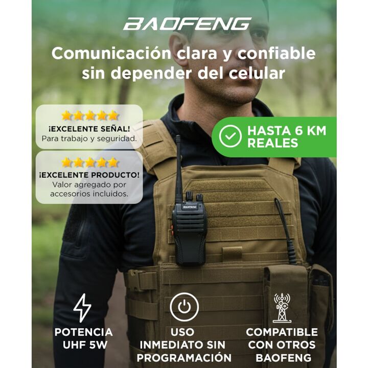 El Handy BF-999S tiene un rango de frecuencia UHF de 400-470MHz, capacidad 16 canales y rango de comunicación de 6 a 10 km. Comunicate con quién vos quieras con su autonomía de 8 horas de batería. El Handy más confiable, estable y más vendido del mercado con 2 Baterías Incluidas, Auricular Manos Lib...