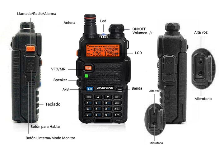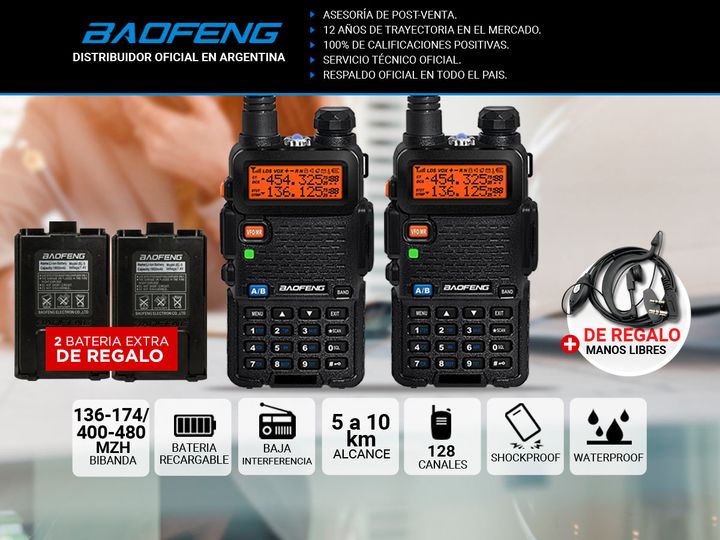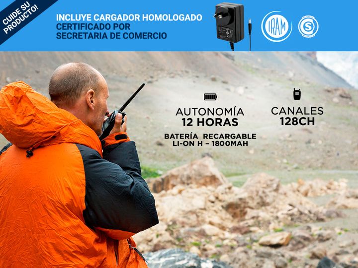 Diseñado para soportar condiciones adversas, este handy es resistente al agua y a caídas, lo que lo hace ideal para aventuras al aire libre. Con un alcance de 5 a 10 km, es perfecto para mantenerte conectado en exteriores. Especificaciones Doble banda/Dual Standby 136-174mHz / 400-480 mHz Rango de C...