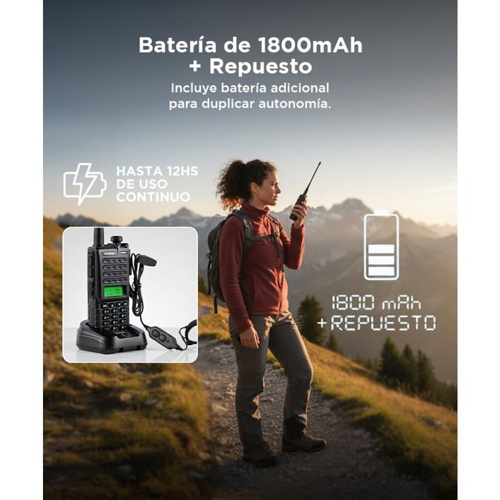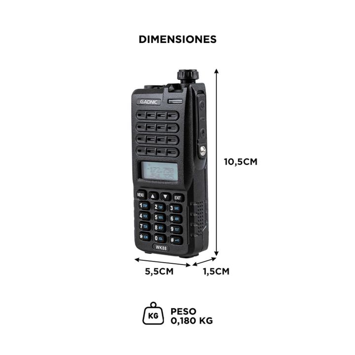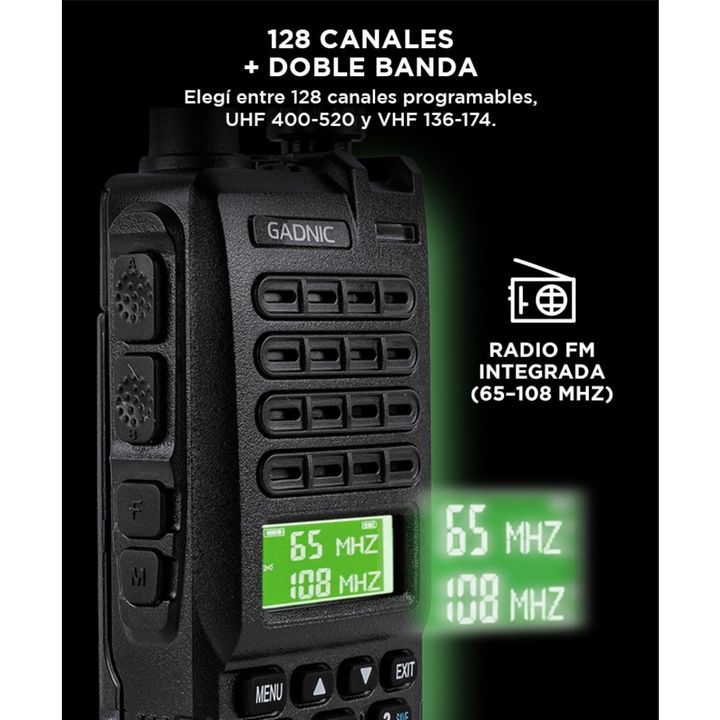 El Handy cuenta con doble banda y función dual standby, operando en un rango de frecuencia UHF de 400-520 MHz y VHF de 136-174 MHz. Tiene una capacidad de 128 canales, permitiendo una comunicación versátil. La separación entre canales se puede ajustar a 5, 6.25, 12.5 o 25 KHz, garantizando una trans...