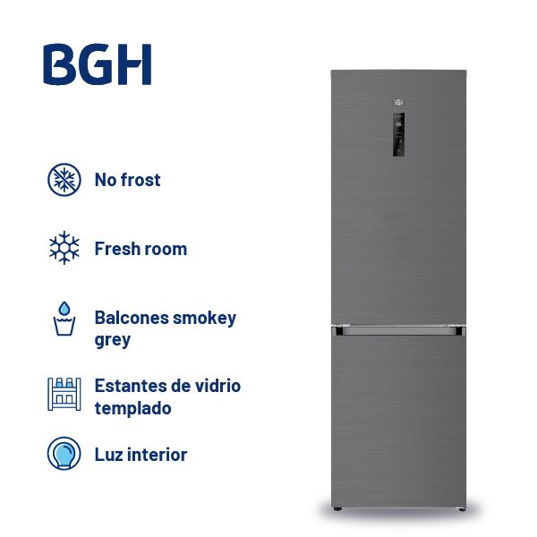 Heladera BGH Combi 312L No Frost Dark Inox BRC310I2A Características principales • Capacidad total de 312 litros • Diseño Combi con freezer inferior • Sistema No Frost • Eficiencia energética A++ • Compartimiento Chill de 25 L • Terminación Dark Inox Premium La heladera BGH BRC310I2A ofrece una exce...