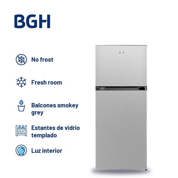 Heladera BGH Top Mount 404 L No Frost Dark Inox BRT405I2A Características principales • Capacidad total de 404 litros • Tecnología No Frost • Freezer superior Top Mount • Eficiencia energética A++ • Gas ecológico R600a • Color Dark Inox Premium La heladera BGH BRT405I2A combina gran capacidad y efic...
