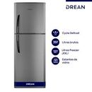 Heladera con freezer cíclica. Eficiencia energética C. Color gris. Gas R600a. Capacidad bruta 397 litros. Capacidad neta 395 litros. Deshielo manual. Estantes de vidrio templado regulables en altura. Anaqueles en contrapuerta. Cajón para frutas y verduras. Control de temperatura interior. Luz LED.