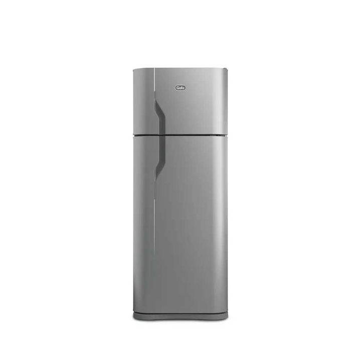 Heladera Gafa HGF368 AFP de 282 litros de capacidad neta, con freezer de 76 litros. Dos puertas, compartimientos para frutas y verduras, estantes de alambre y luz interior. Enfriamiento cíclico, eficiencia energética A y diseño tradicional en color gris. | Código Interno: 330350 | Modelo: HGF368 AFP...