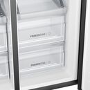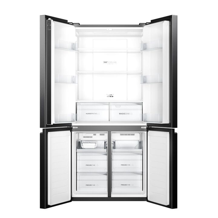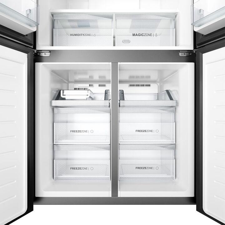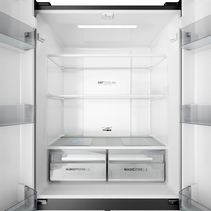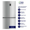 Heladera No Frost Twin Inverter T-Door. Eficiencia C. Color inox. Gas R600a. Capacidad bruta de 522 litros. Estantes de vidrio templado en refrigerador y anaqueles en contrapuerta. Cajones extraíbles en freezer. Display táctil con función: Vacaciones, Inteligente con IA que ajusta la temperatura aut...
