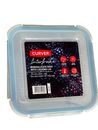 Hermetico Contenedor Taper de Vidrio con tapa Plastica con Goma y Cierre Clip en cada uno de sus lados. Es cuadrado grande de 2,4 lts. Medidas : Medidas externas : 22 x 22 x 11 cm Medidas internas de la base : 18 x 18 x 9 cms. Capacidad : 2,4 Litros Horno : hasta 300 grados ( solo la base ( no la ta...