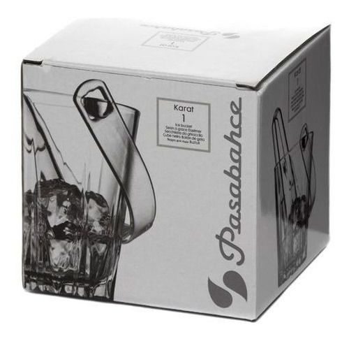 Hielera en vidrio Pasabahce con pinza. Elegante, clasica, util, un regalo unico !!! Pieza unica. Diametro : 12 cms. Altura : 13 cms Pinza y manija en plastico PVC mate.