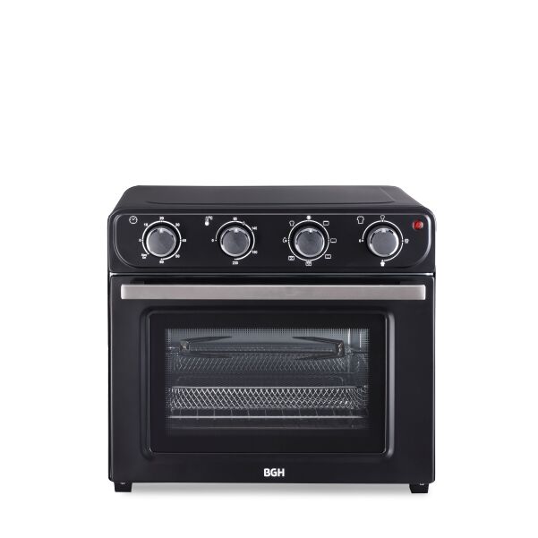 Horno Eléctrico BGH 30L Negro Un horno todo en uno para una cocina más versátil Este horno eléctrico de 30 litros no solo te permite hornear, sino que también incluye funciones de Air Fryer, Rotisserie, Tostador y Convección, ofreciéndote múltiples opciones para cocinar de manera rápida y saludable....