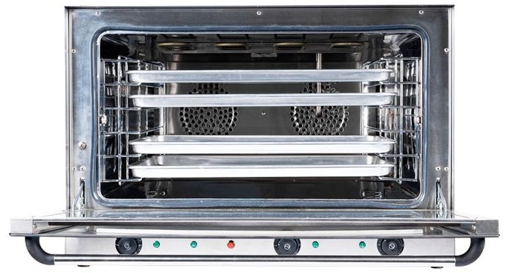 HORNO CONVECTOR TB-HCON4P PLUS TURBOBLENDER -Capacidad 86Lts -4 Bandejas de 400x600mm -Timer programable hasta 120 minutos -Control de temperatura desde 50° a 300°C -Doble resistencia fondo y superior -Puerta con doble vidrio templado -Luz interna y termostato -Funcion de Humidificacion -Funcion de ...