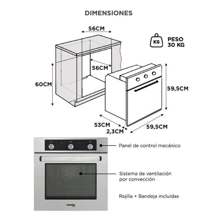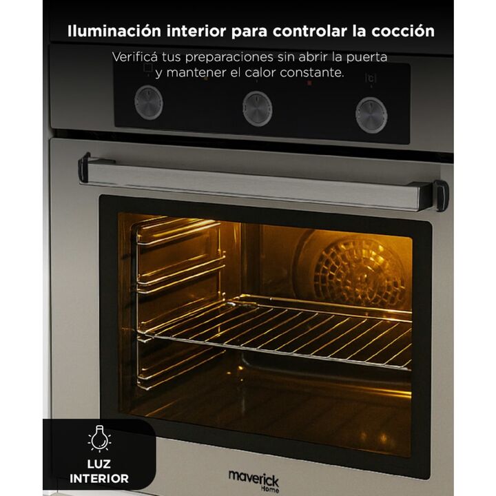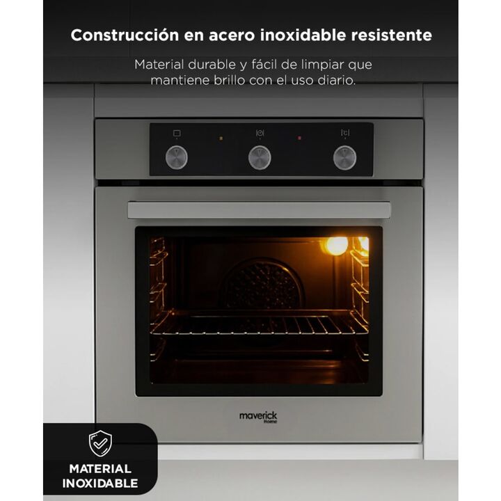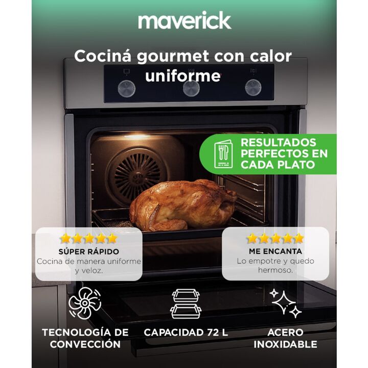 Diseño elegante para cocinas modernas El horno empotrable Lyon 2 Maverick combina un frente de acero inoxidable con un formato de sesenta centímetros que se integra fácilmente en cocinas contemporáneas. Su estilo minimalista aporta una apariencia premium que realza muebles y mesadas. Es una excelent...
