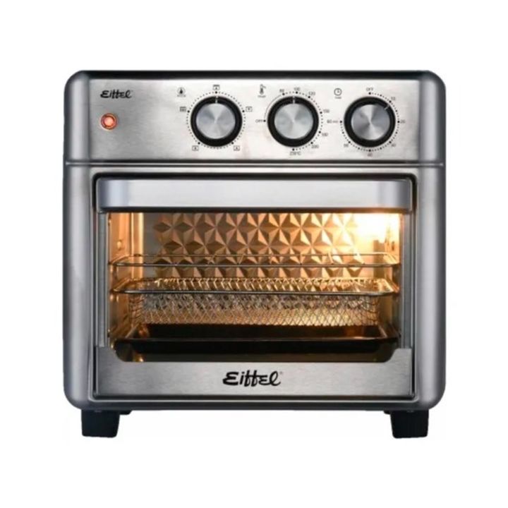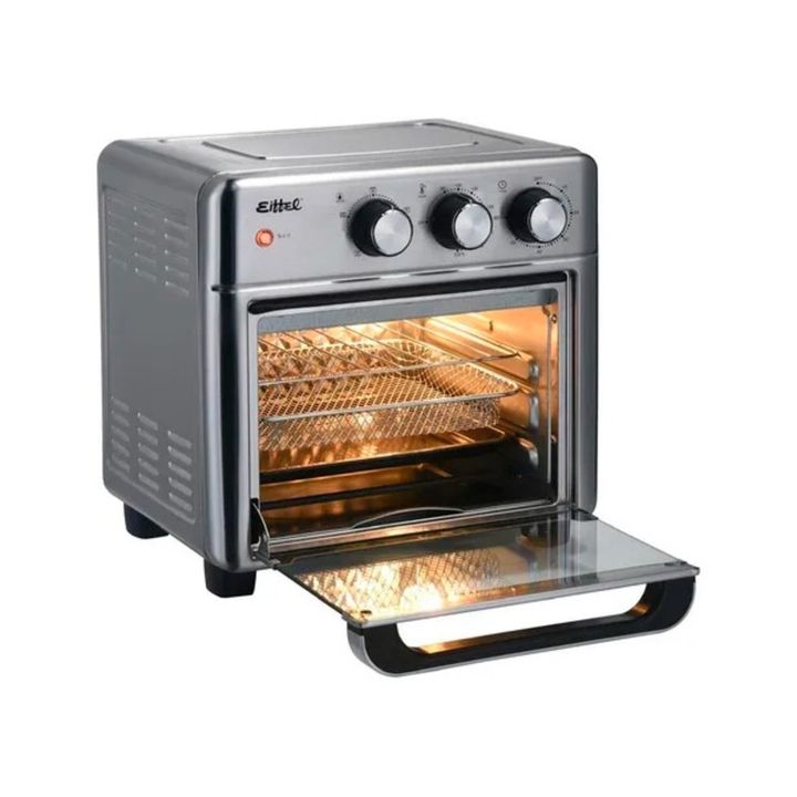 Potencia de 1.2 kW que garantiza un calentamiento rápido. Capacidad de 15 litros, ideal para preparar grandes porciones. Temperatura ajustable entre 80° y 230°C para adaptarse a diferentes recetas. Función 2 en 1: cocina como horno y como freidora de aire. Diseño elegante en acero inoxidable, du...