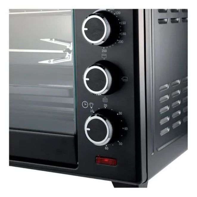 - Capacidad (lts): 60 lts - Timer - Cantidad de posiciones de bandeja: 4 - Horno eléctrico con un moderno diseño en color negro - Puerta con amplio visor - Luz interior para controlar el estado de la comida - Ofrece sistema de apertura vertical - Sus perillas de control ubicadas en el frente del equ...