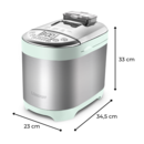 Horno de pan – Potencia 650 W – 1 kg de capacidad máxima (opción para 500 g y 750 g) – Pantalla LED y control digital táctil – 14 programas predefinidos – Función de ajuste manual – Accesorio dispensador para frutos o nueces – Temporizador hasta 23 horas – Función mantener caliente – Paleta de amasa...