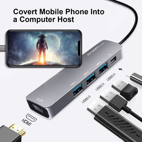 ADAPTADOR ARGOMTECH HUB TIPO C 5 EN 1 AXESS CON PASO PD DE 60 W - ARG-UB-0185 - A00594 Amplíe las opciones de puertos de su computadora o teléfono móvil con nuestro concentrador tipo C 5 en 1. El One Axess 5 en 1 le permite conectar un monitor externo (HDMI), una unidad de memoria USB u otros perifé...