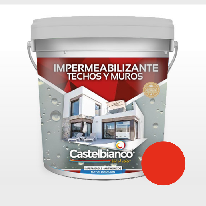Impermeabilizante para techos y muros color bermellón. Ideal para proteger superficies exteriores contra filtraciones y humedad. Forma una película elástica y resistente, con excelente adherencia y gran poder cubritivo. Brinda durabilidad y protección prolongada. La imagen es ilustrativa. Verifique ...