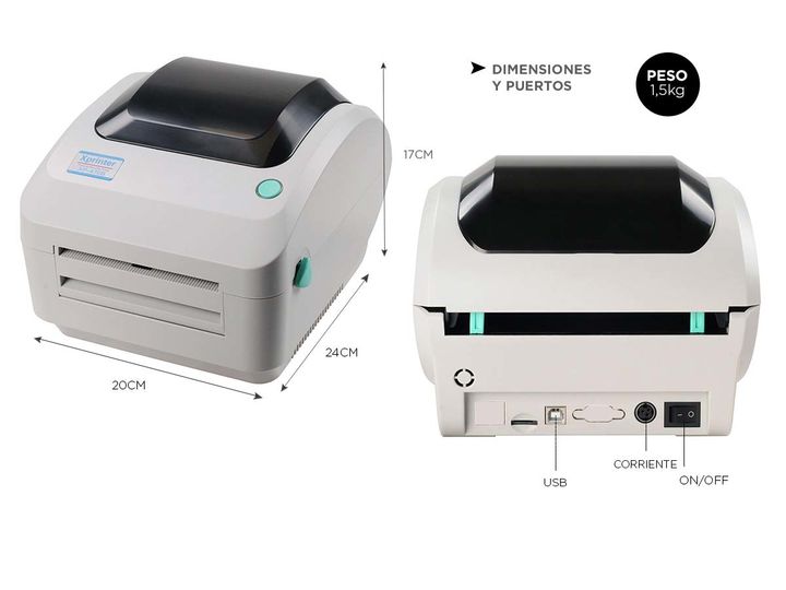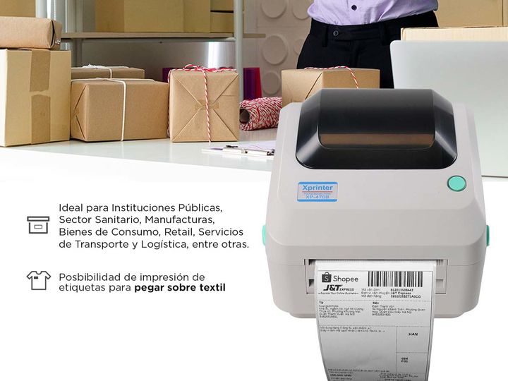 Ideal para imprimir guías de mercado envíos, etiquetas de mercado envíos full (producto y cajas) y guías de paqueterías en general. Diseño compacto con potentes funciones El diseño compacto de la impresora XP-470B, que ahorra espacio, contiene un potente procesador de 32 bit para la producción rápid...