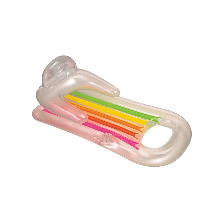 Disfruta del verano con la colchoneta inflable Intex Rey Kool, diseñada para ofrecerte comodidad y diversión en la piscina. Fabricada con paneles de vinilo transparente y un vibrante fondo multicolor, esta colchoneta es perfecta para relajarte bajo el sol. Con respaldo y apoyabrazos, te brinda un so...